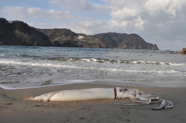 昨年はリュウグウノツカイ、一昨年はアザラシと毎回冬が来るたびに珍しい海の生き物が流れ着いて来ましたが、どうやら今年はダイオウイカの年だったようです。