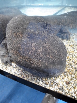 (もっとも、小ささについては彼らの中では、サンショウウオというと豊岡市のマスコットキャラクターにもなっているオオサンショウウオ[下写真]のイメージが強すぎるせいもありますが・・・・)
