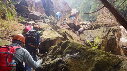 例えば、大杉谷はこんな所を登ったり、歩いたりします。