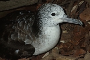 夕方を過ぎると帰ってきたオオミズナギドリが下の写真のように、野営地をはじめとした島内のいたる所をうろついていています。