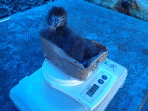 その他のお昼の調査としては下の写真のように巣穴の雛の重さを量り、成長具合や採餌の頻度なども調べます。