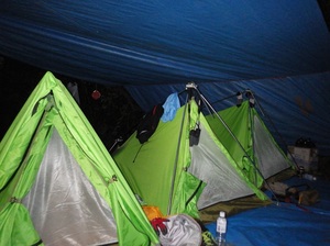 上陸後は下に写真のように野営地を設置します。