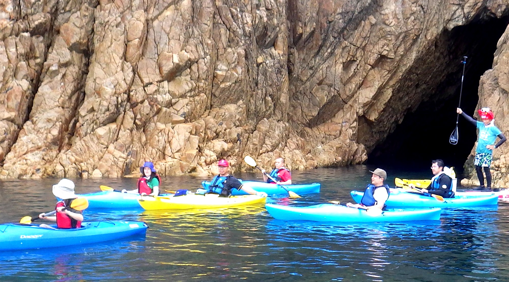 カヌー初心者と経験者ごとにグルーブに分かれて、いよいよ海へ出発!ポケットビーチや洞窟の中の安定した場所でカヌーを降りて、おそうじ開始です。