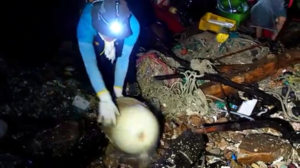 カヌーで回収したゴミは、漁船に積んで漁港へ持ち帰ります。集まったゴミの量は、なんと漁船山盛りに4隻分でした。皆さん一生懸命作業してくださいました。