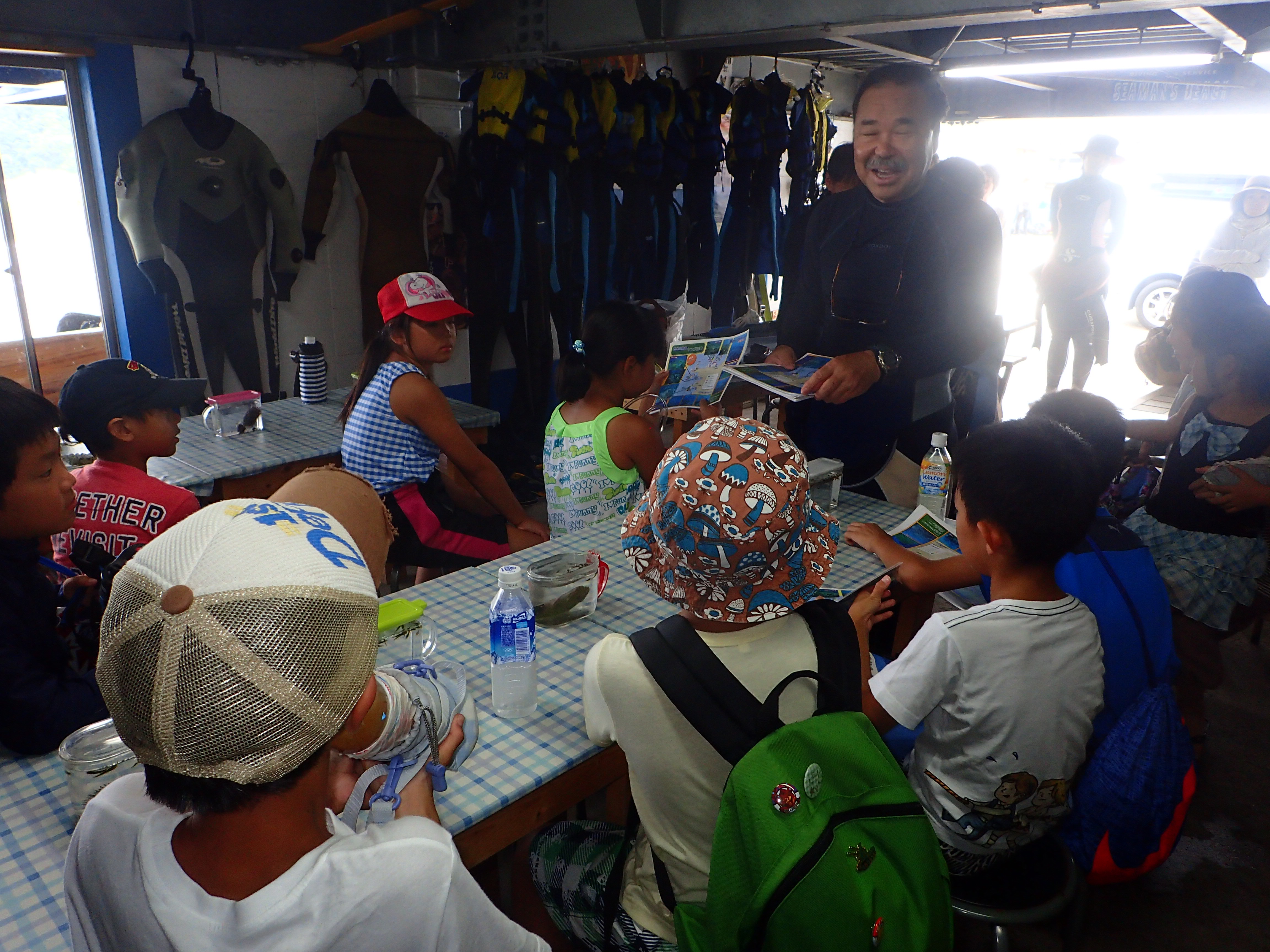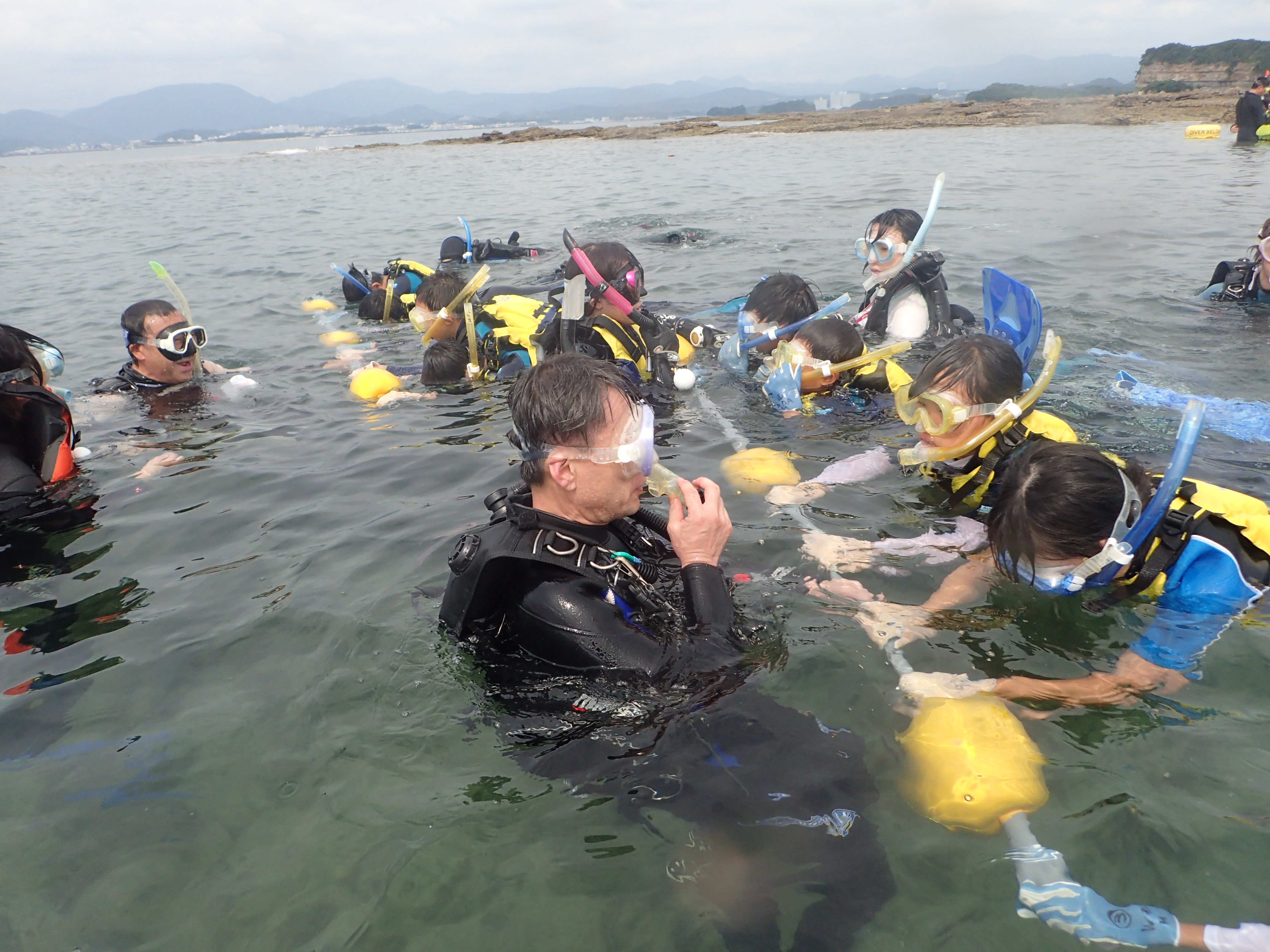 参加した子供たちは、海で泳いだことはあるけどスノーケルをするのは初めてで、白浜の海中を見てとても楽しんでいました。終わりに近づくと「まだやりたい!」とみんな口をそろえて言っていました。海からあがった後もなかなか海から離れず、磯で生き物や海のカニや貝を探して遊んでいました。