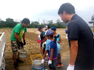 午前中は、そんならっきょうの歴史を学んだ後、らっきょうの植え付け体験をしました。