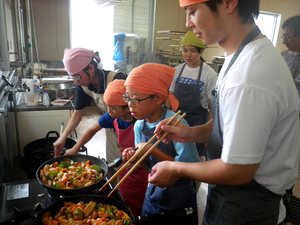 植え付け体験の後は、らっきょうを使った料理づくり体験。