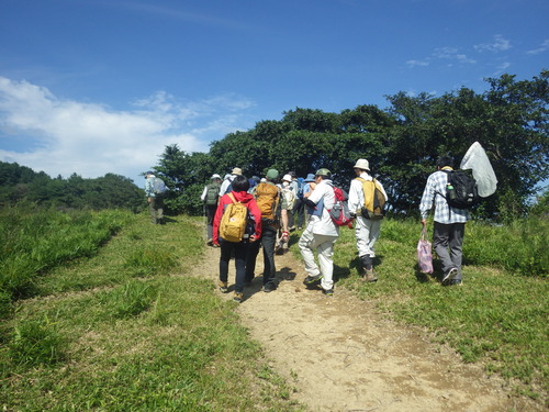 今回は伊丹市昆虫館から講師をお招きし、昆虫を観察しながら草原の生物多様性を感じ、東お多福山の新たな楽しみ方を発見してもらおう!という企画です。昆虫ということで小学生の親子連れの参加者が多いのかな、と思っていたところ、少年の心を忘れない元気な大人の方々に参加して頂きました!