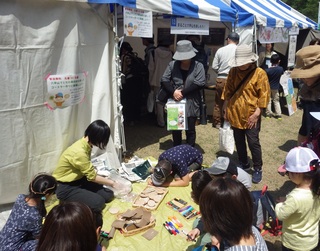 上段:ブースの様子 下段:間伐材を使ったコースターづくり 間伐材を使ったコースターづくりは子ども達に人気があり、用意していた材料が午前中にほぼなくなってしまう勢いでした。参加した子ども達が思い思いの絵を描きつつも、使用した間伐材(リョウブ)の木の香りや手触りを感じながら作業をしてくれていたので、ここから六甲山の自然などに、興味を広げてくれると嬉しいなと思いました。 |