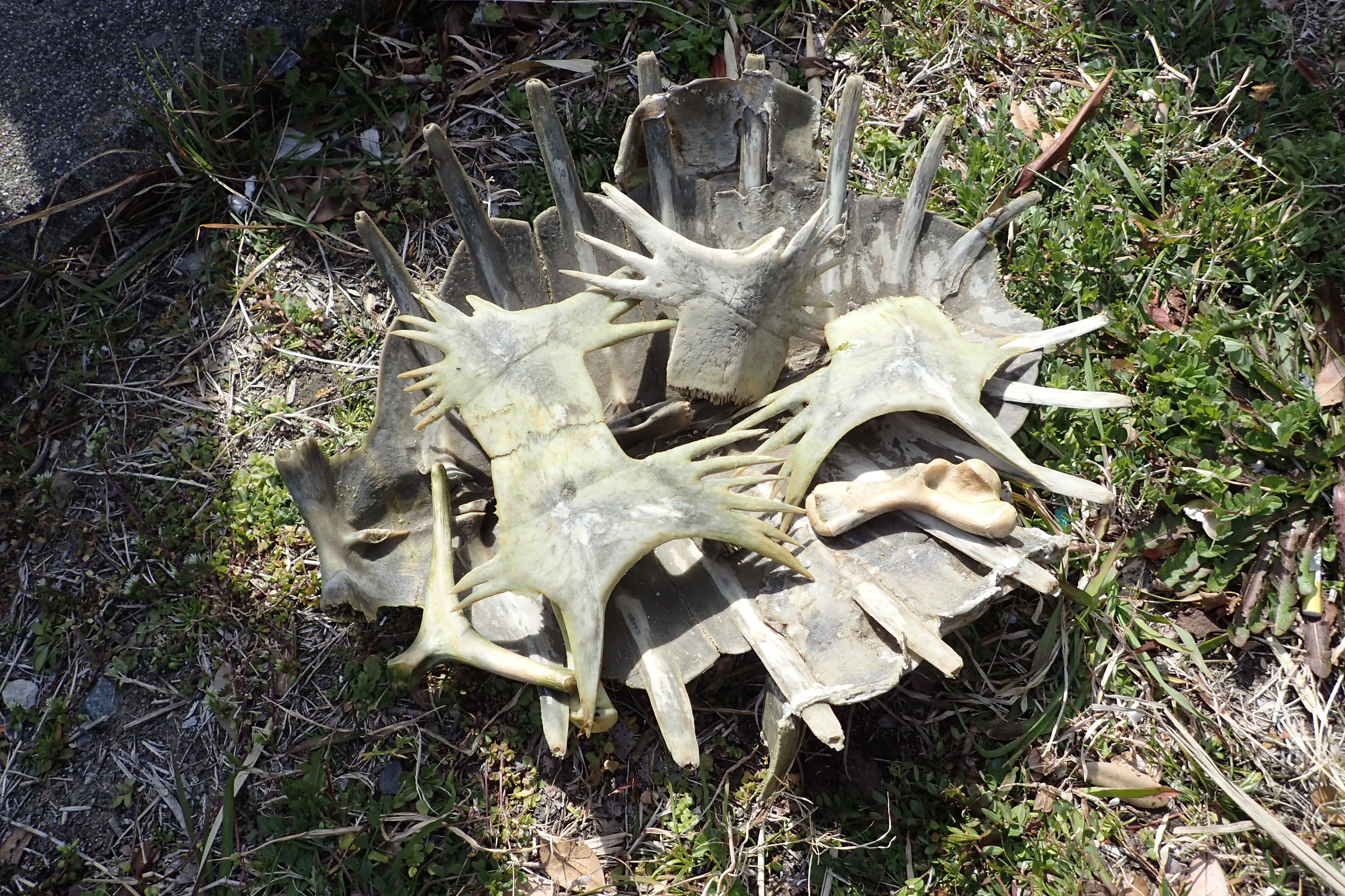 | ため池までの道中にいくつもある枇杷 ウミガメの骨 |