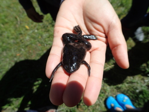 13個のわなに沢山のアフリカツメガエルが入っていて、子どもたちは「わー!一杯いる~!気持ち悪―い」と悲鳴にも似た声をあげていました。