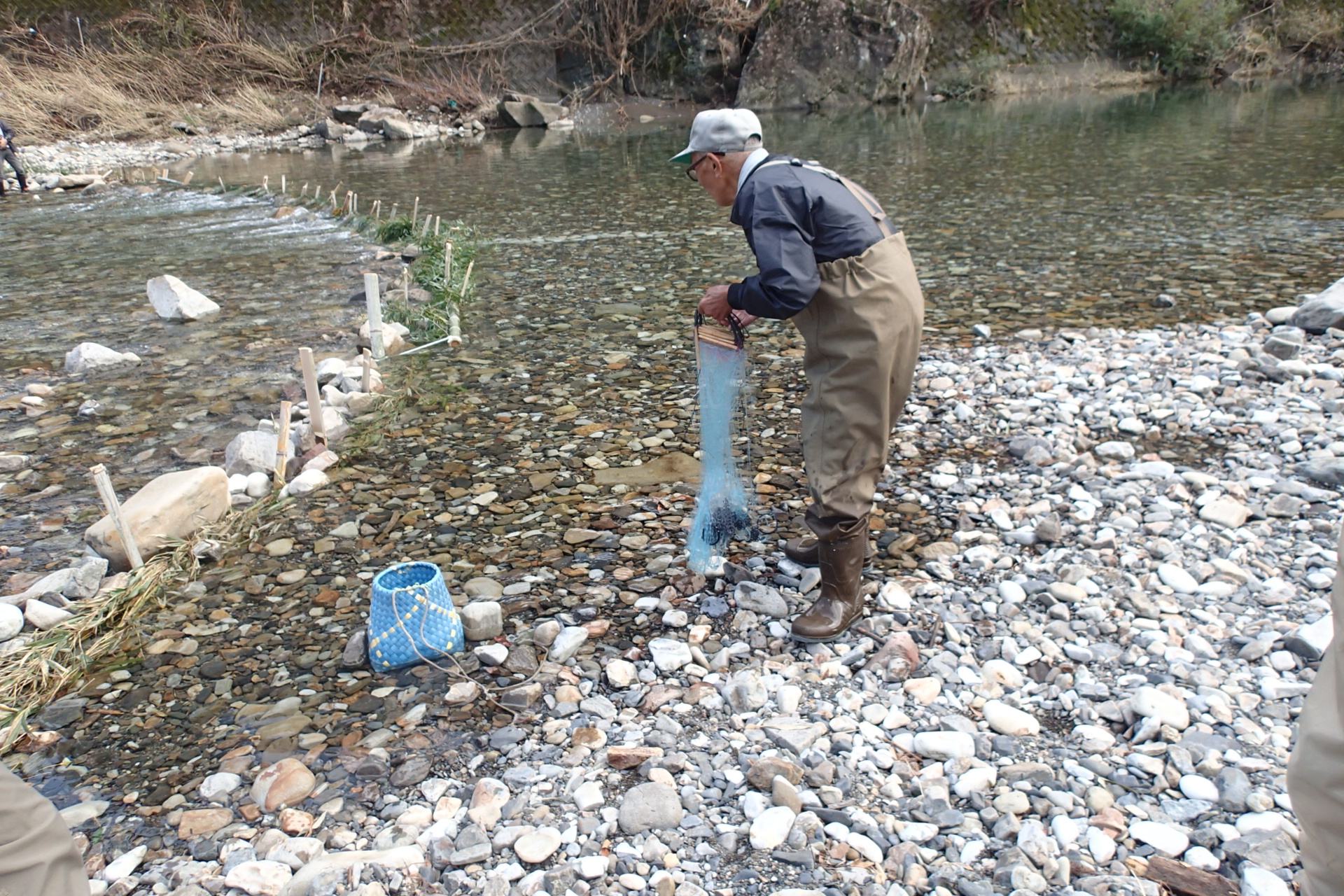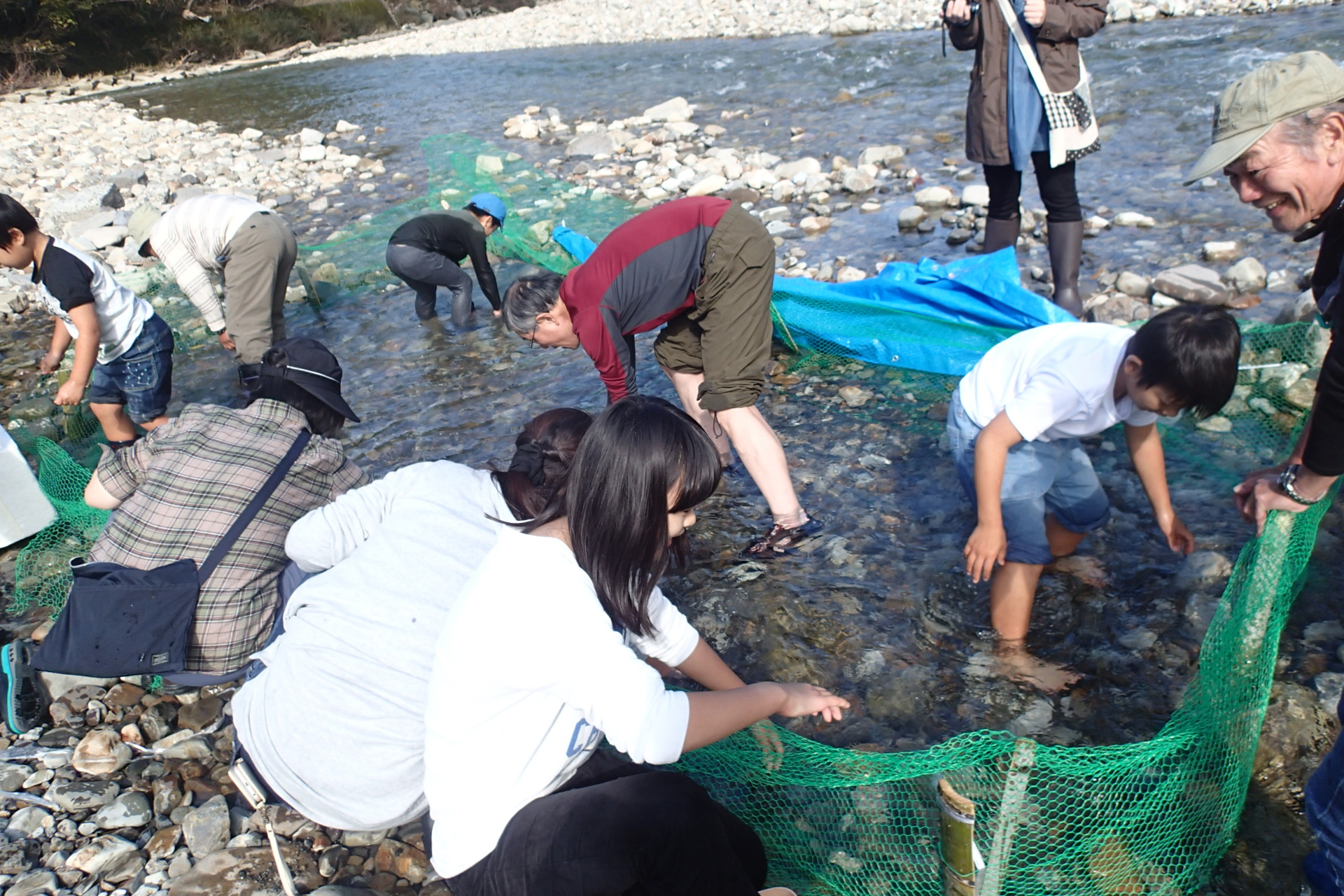 地域の伝統漁法や川に生息する魚について知ったり体験したり、自然とのふれあいを楽しんでいただきました。