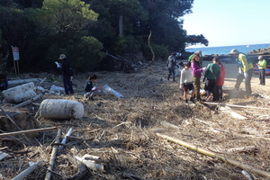 神島へ上陸すると沢山の漂着ゴミがあり、「どんなゴミが、どれくらいあるか」を記録しながら清掃活動を行いました。