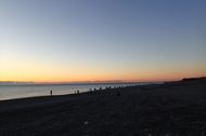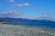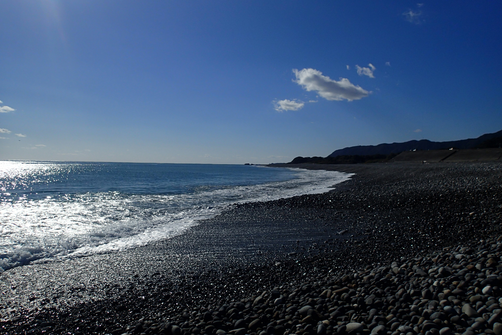 熊野市から紀宝町まで約22キロ砂利浜が続いている七里御浜は、平安時代後期以降、熊野三山への参詣道として、「蟻の熊野詣」と言われるくらい多くの人に利用されてきました。そして、今でも熊野三山へと向かって歩く人の姿を見かけることがあります。