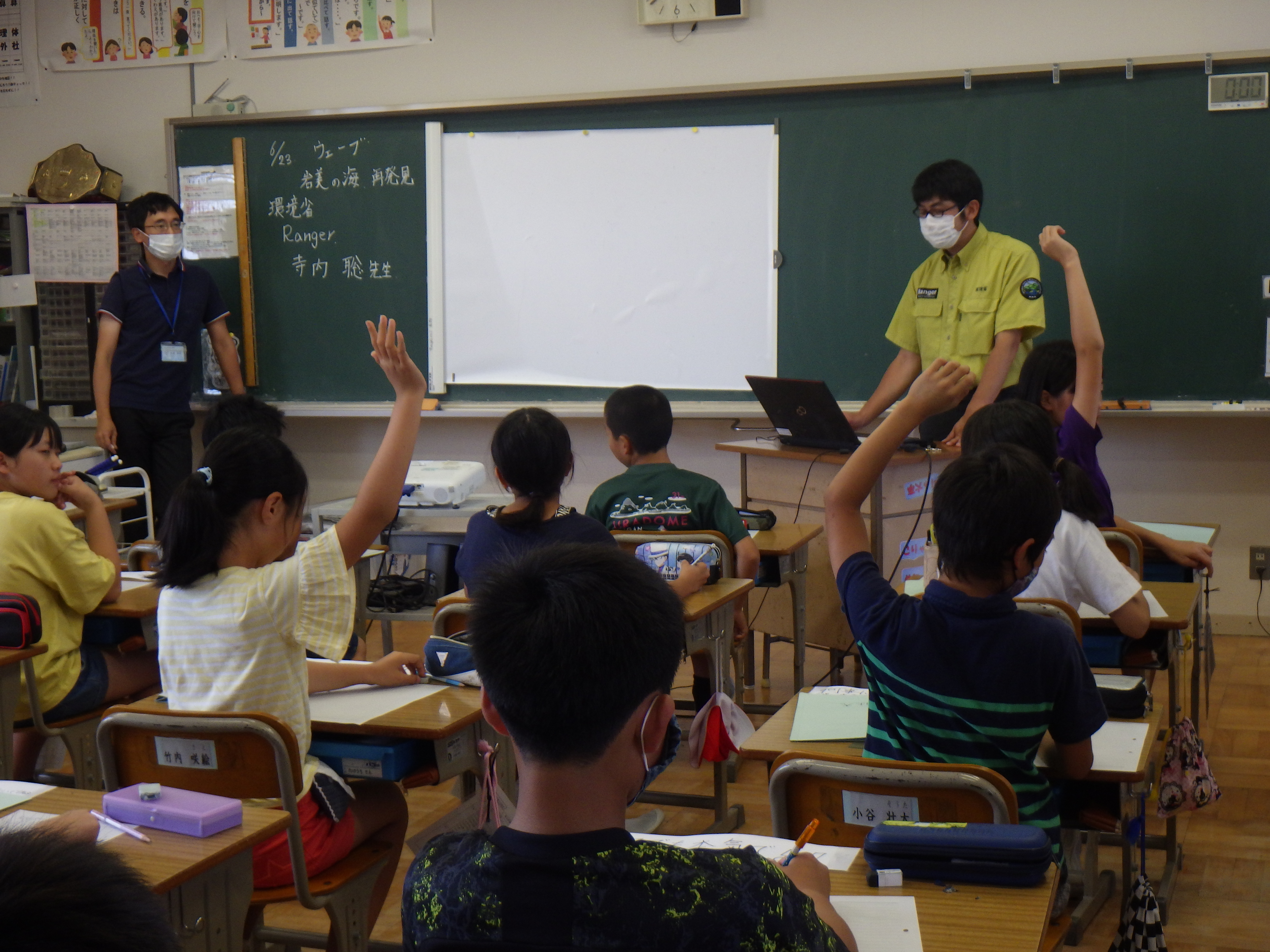 一生懸命話を聞いていた子どもたち。国立公園やレンジャーについて、初めて聞いた話もあったと思います。今日の話を聞いたことで、環境などについて考えるきっかけになったらいいなと思います。そしてこれから先、美しい海を、環境を守っていって欲しいです。