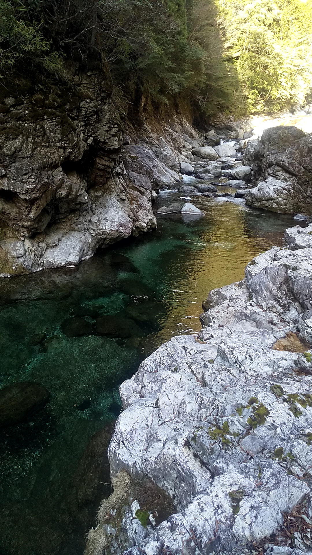 遊歩道沿いには、青く透き通った前鬼川の美しい水が流れています。別名(前鬼ブルー)とも言われています。