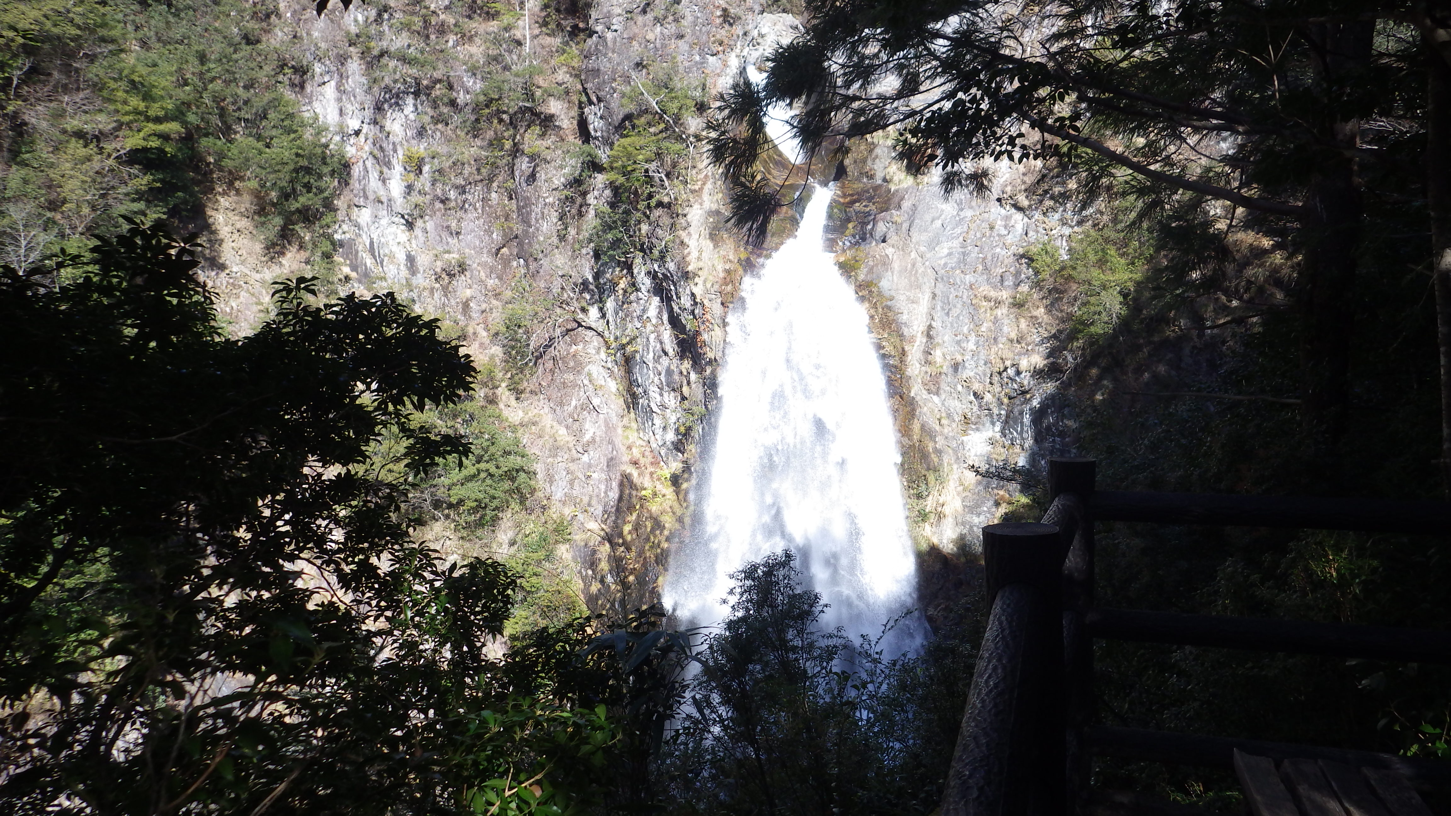 展望台からの不動七重ノ滝は、7段の滝の中でも一番大きな3段目を間近に見ることができます。細い落ち口から一気に落ちていく大迫力な眺望が広がります。3段目だけでも落差80メートルもあると言われています。
