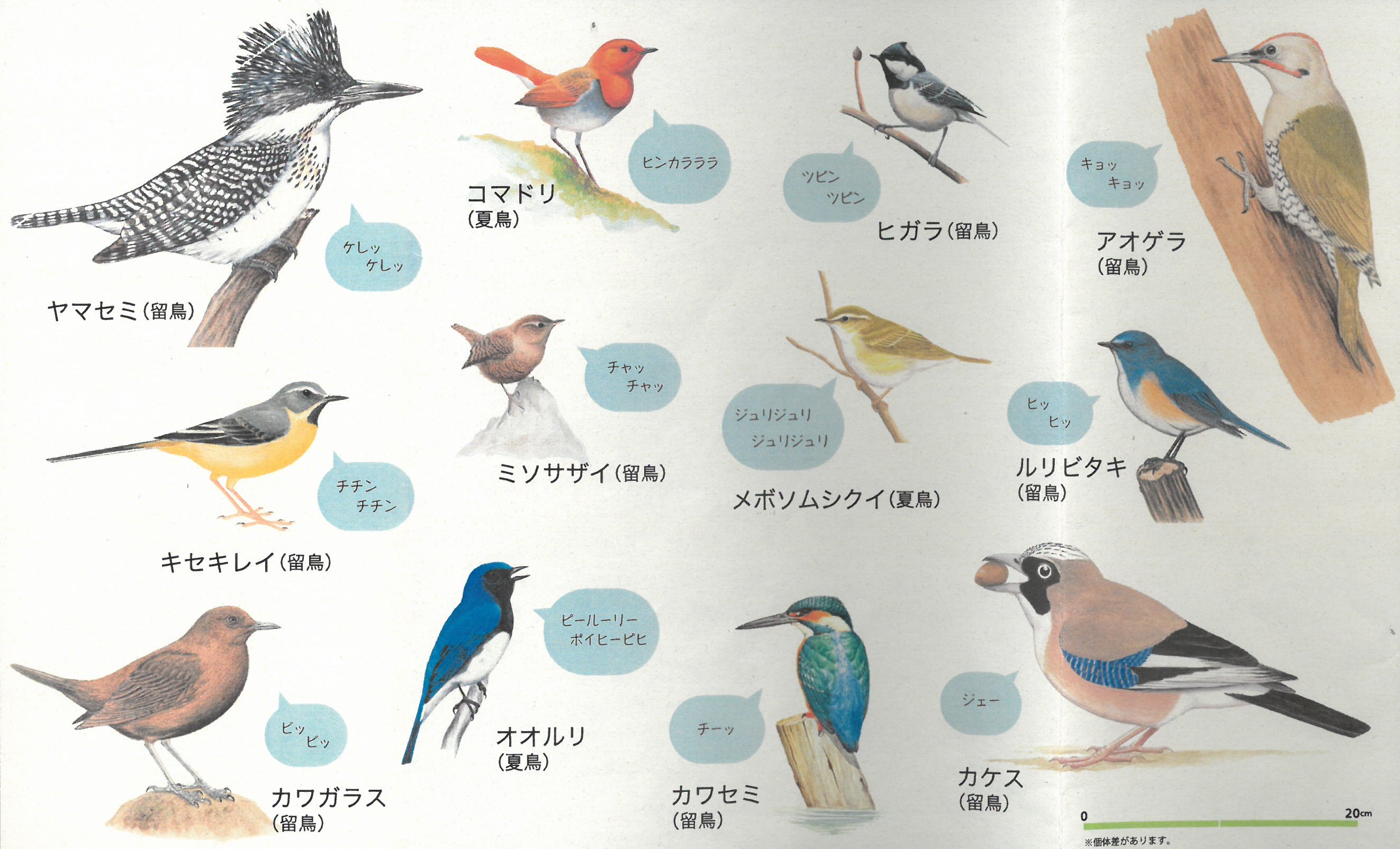 (設置されている、様々な野鳥の鳴き声を紹介した案内板)