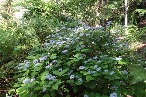 コアジサイは六甲山の初夏を彩る花。日当たりのよい開けた場所よりも少し薄暗い山中の登山道でよく見かけます。他の花アジサイと比べて少し小ぶりで全体的にかわいらしい雰囲気が漂います。