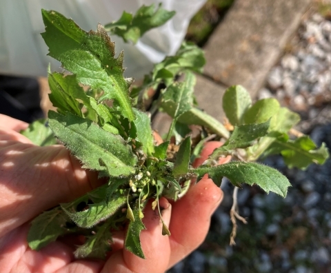 コオニタビラコ(ほとけのざ)…見た目の色や葉の薄さなどからしてレタスに似ていました。味は、少し苦みが強めのレタスのようで、美味しかったです。