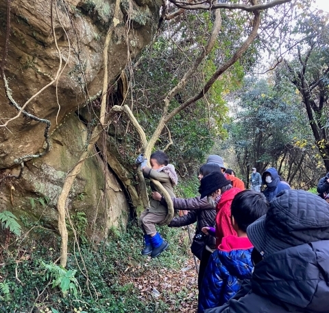 | 観察の合間に蔓でぶらんこ♪ | ひき岩群の一つ、トンピンタンと称される岩 |