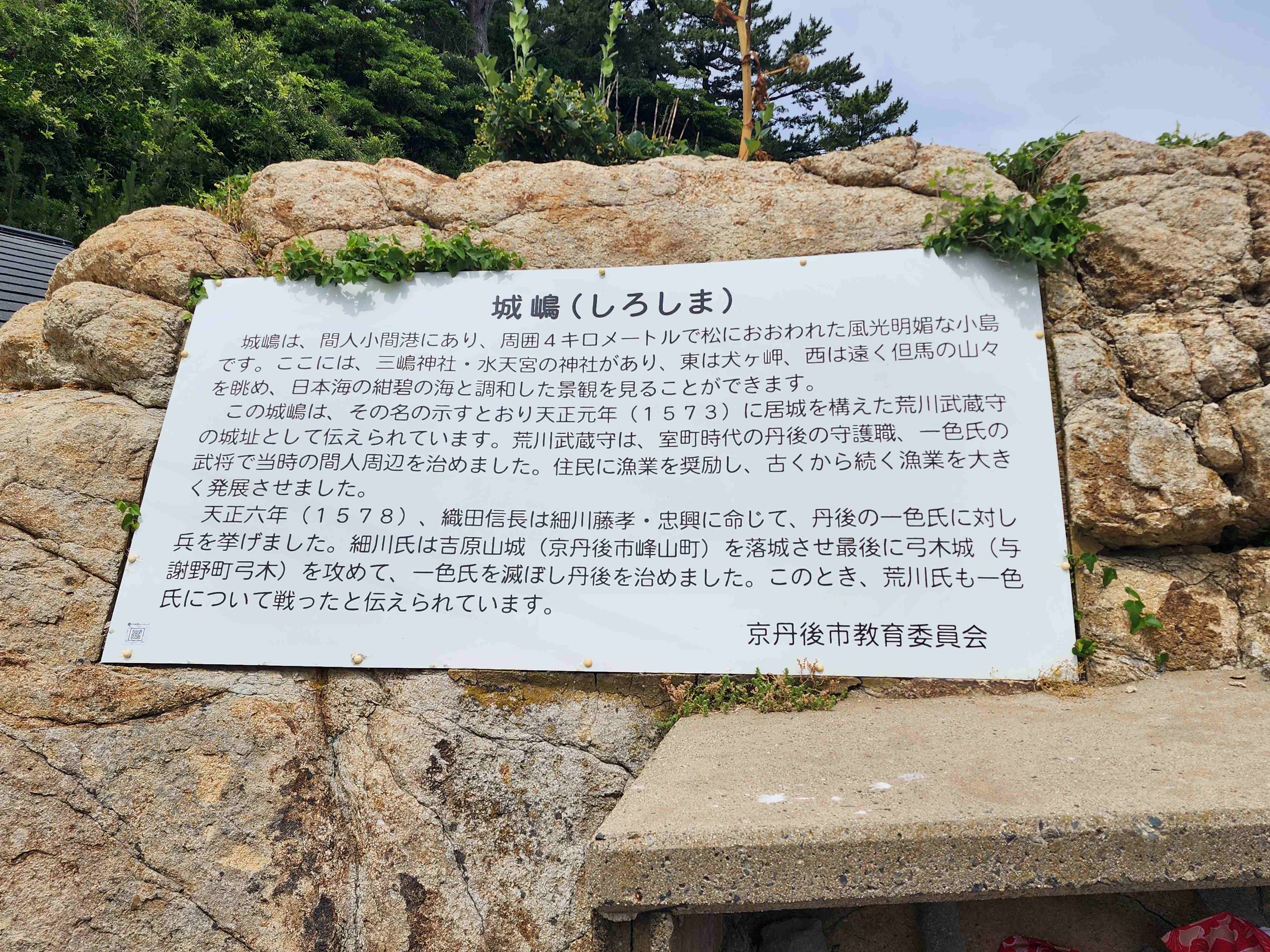 周囲4km、高さ31mの小島です。かつて城が構えられていたため「しろしま」と呼ばれています。島の北部には波食棚やポットホール(甌穴)のほか「ドーム構造」という地層が盛り上がったような構造が見られました。