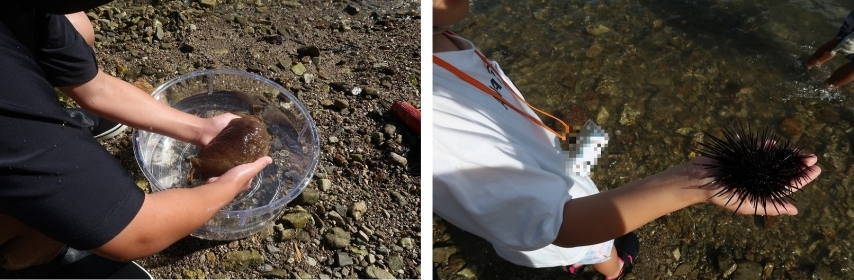 「大きいアメフラシ!初めてみた」「ウニの足の感触はくすぐったい?」