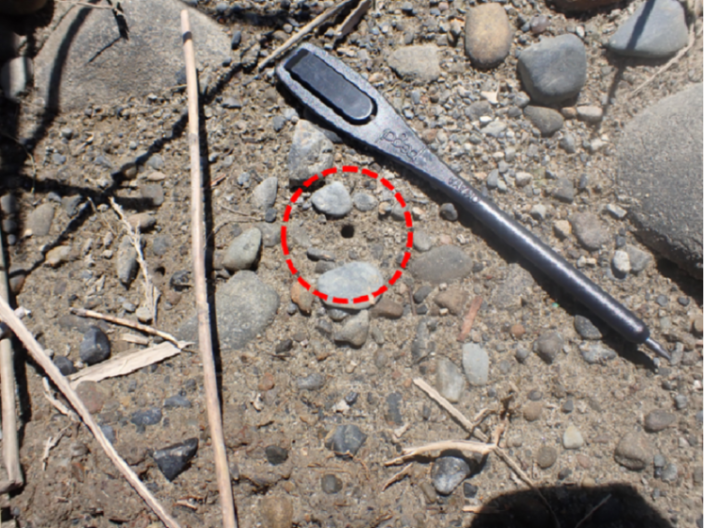 河口付近のヨシ原の砂泥地表面に2㎜程度の穴が開いているものがあります。縦に伸びるその穴に細い棒を差し込んだ際に、もし動いたら…