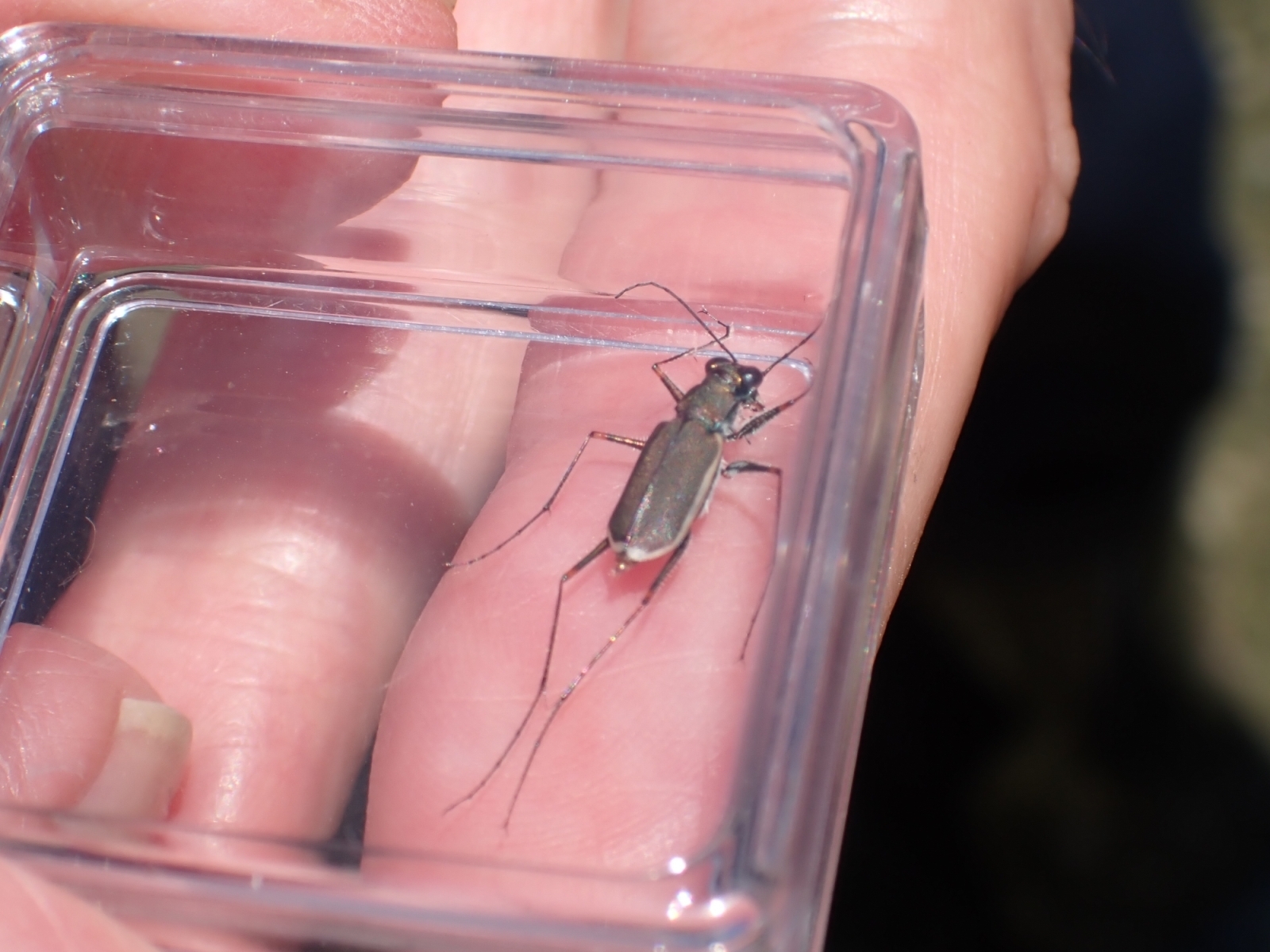 絶滅危惧種であるヨドシロヘリハンミョウは河口域に生息する昆虫で、和歌山県白浜町の一つの河川に生息しています。幼虫は地面に穴を掘り生活していましたが、今回観察するのは成虫です。