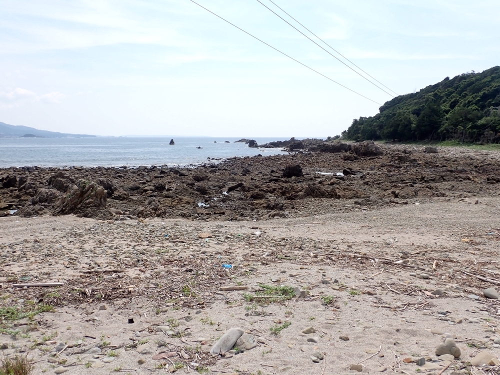 江須崎周辺の海岸線は砂浜と磯が混在する海岸です。