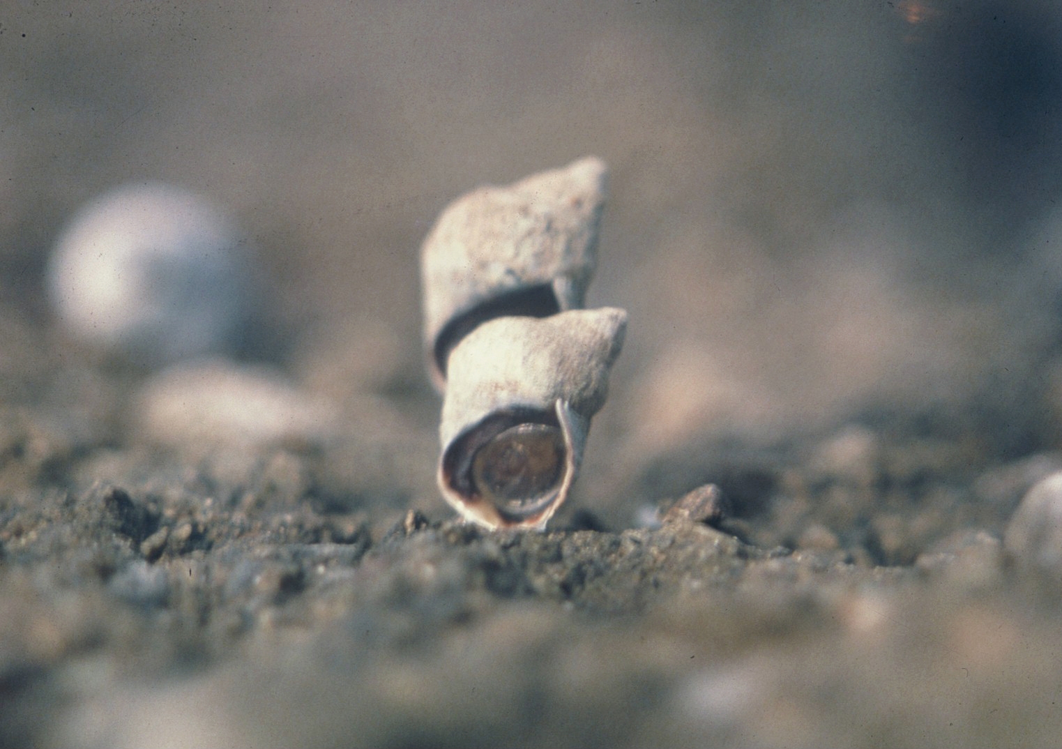 いました!そんな乾いたようなところにも生物が。「タマキビガイ」という5mm程度の巻き貝です。