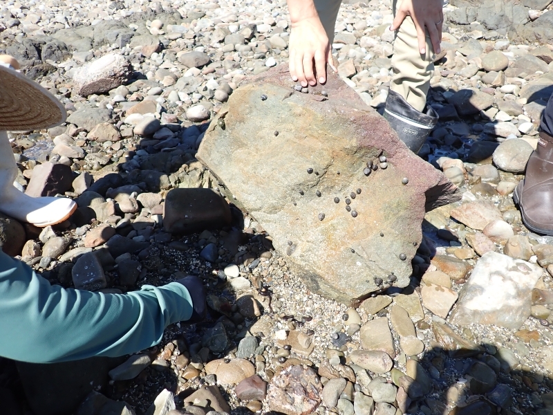 次に、付近にある波のかかっていない石をひっくり返して観察しました。