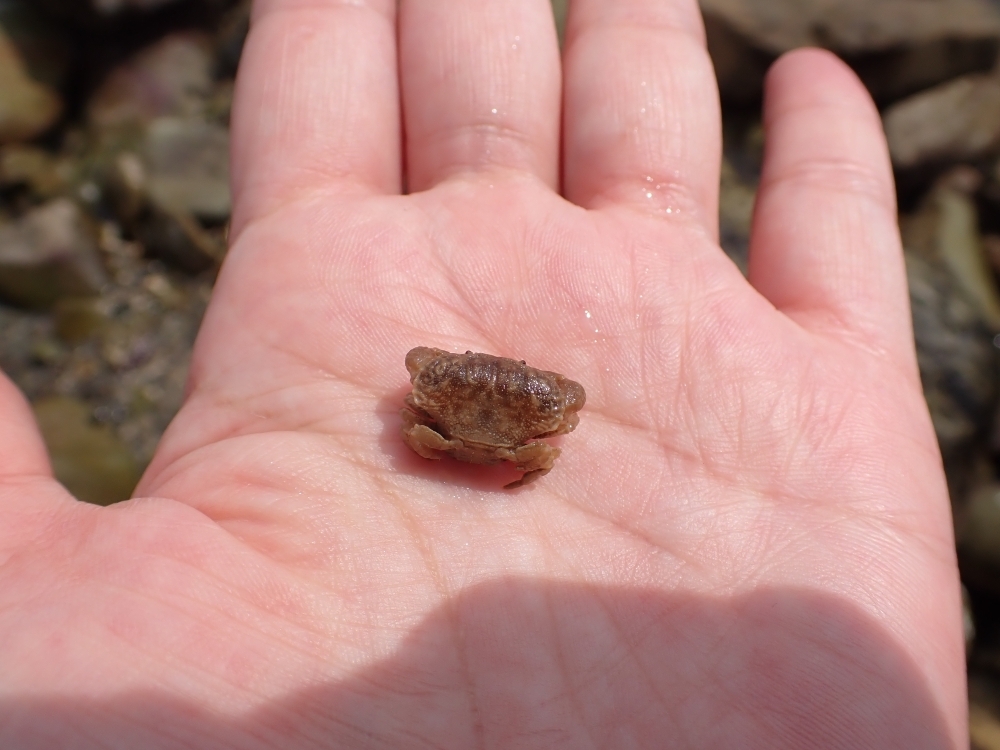 | 海水の下に砂があるところ | 捕まえたカニ |