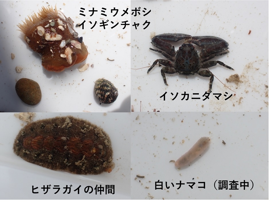 また、今回は岸側から徐々に、波打ち際に近づきながら生物の様子を観察しましたが、その様子を振り返る中で、波打ち際に近づくほどに観察できる生物の種数が多く見られるようになっていた変化に気づきました。