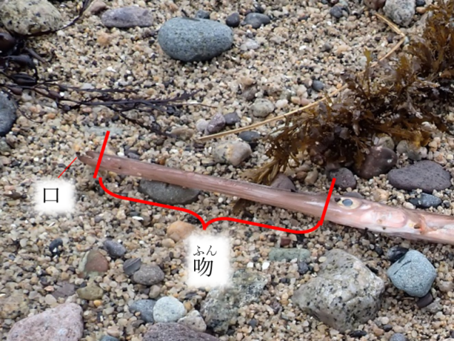 (長い口が特徴的なアカヤガラ) (アカヤガラの口のアップ)