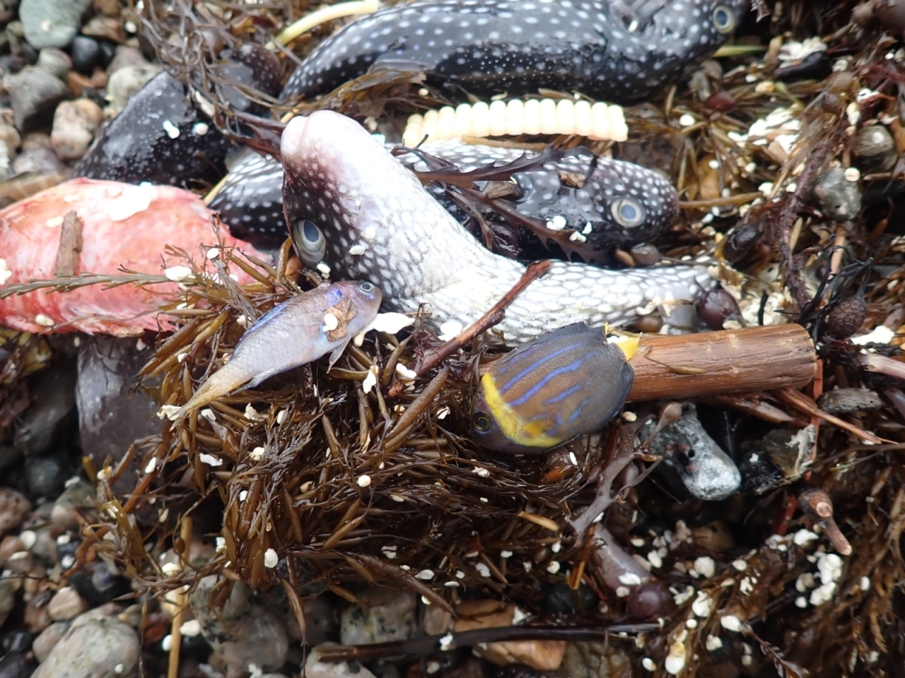 その他にもソラスズメダイ、キンチャクダイ、など様々な魚が打ち上がっていました。