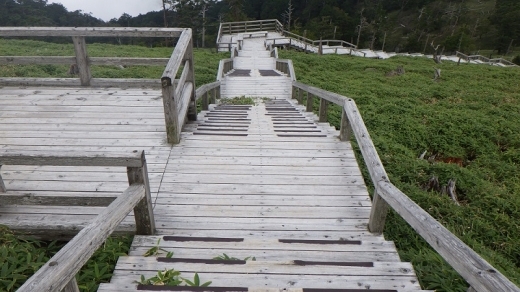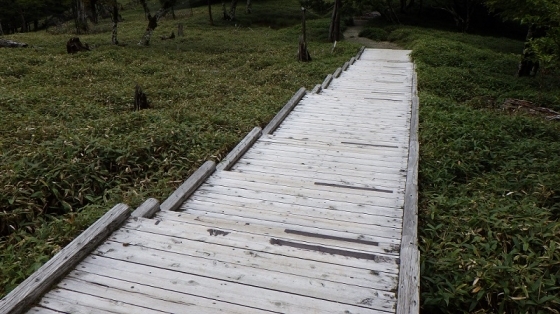 晴天時は日射の照り返しによって木道の段差がかなり見えにくくなります。