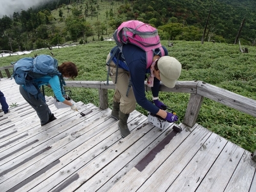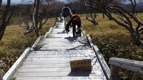 正木峠付近にある木道を歩かれた方は、木道に茶色い印が引かれていることに気づかれたでしょうか・・・?