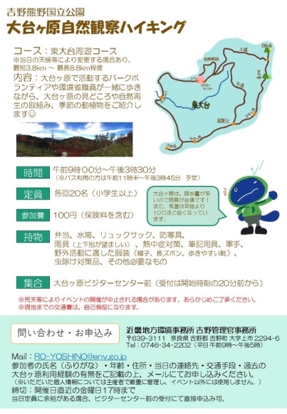 ◆令和5年度吉野熊野国立公園大台ヶ原自然観察ハイキングの詳細はこちら↓