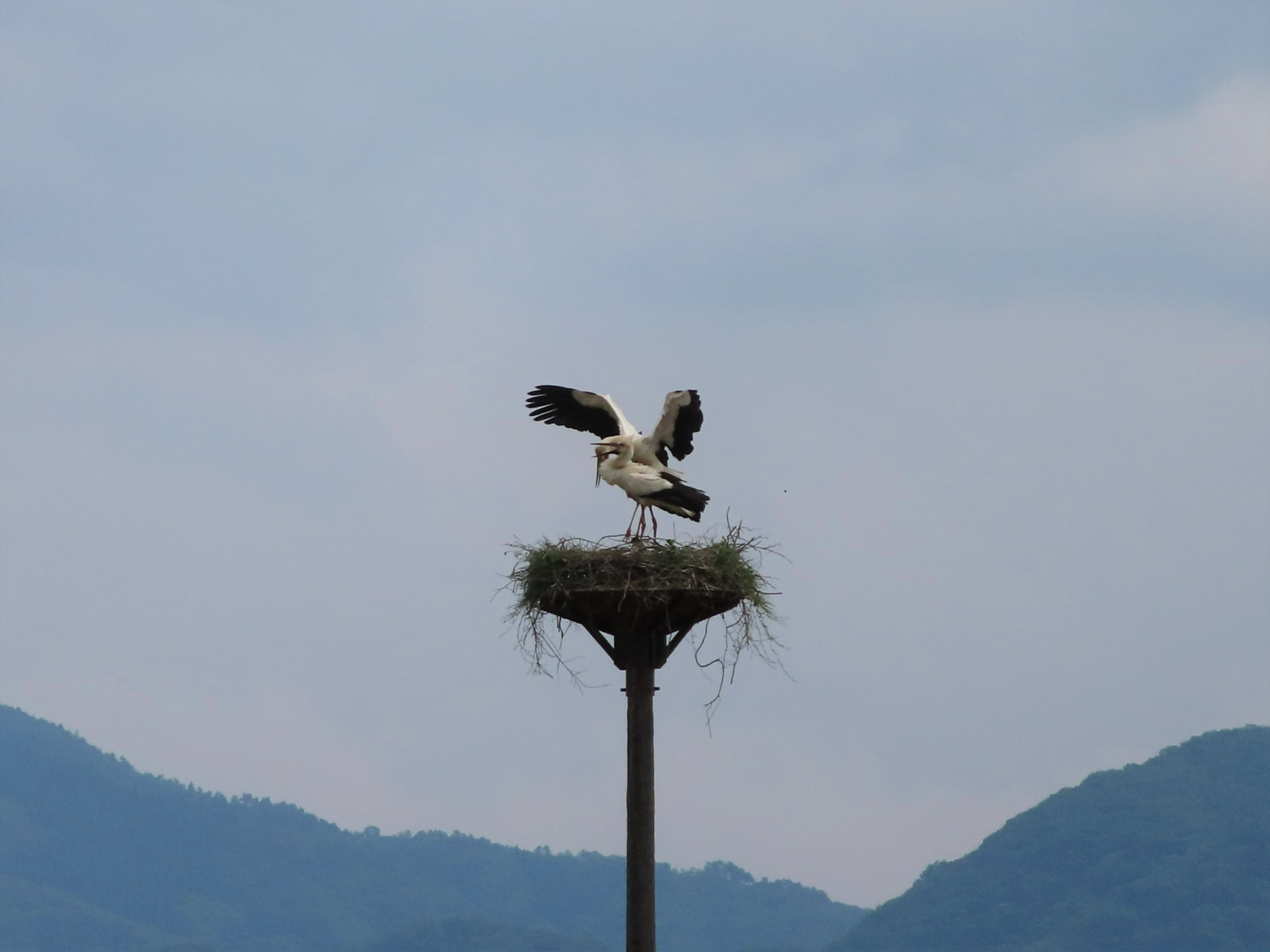 豊岡市では人工巣塔が数カ所設置されており、コウノトリが巣を作っています。