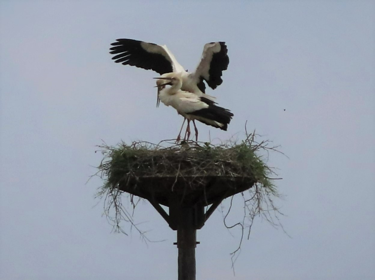 その後はコウノトリのコミュニケーションの取り方のひとつで、嘴をカタカタを打ち鳴らすクラッタリングを交互に行っていました。