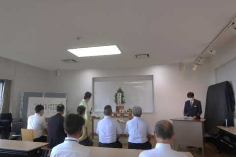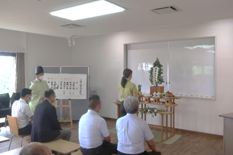 【祭壇前で宮司さんによる安全祈願のお祓い】