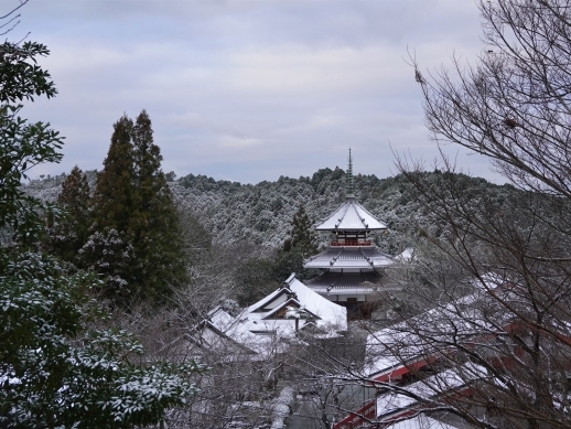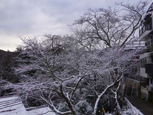 この冬一番の寒波(1月下旬)により各地では大雪となったようですが、吉野山では予想していたほどの降雪とはならず、薄らと雪化粧といった感じに収まりました。