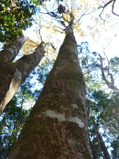 樹幹に爪跡や、周辺に折れた枝がたくさん落ちていたら上を見てみてください。クマ棚を見付けられることがあります。