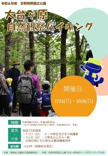 今年もパークボランティアさんや環境省職員が大台ヶ原を案内する「大台ヶ原自然観察ハイキング」を開催します。