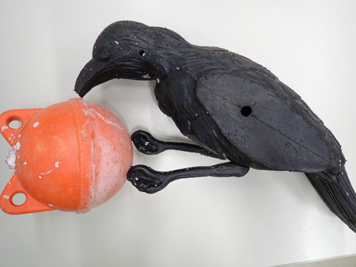 8月には図書館竹野分館前のブリッジをお借りして、漂着ゴミについての展示を行ないます。今回の工作教室に漂着ゴミの参考として持っていった物で、おそらく畑に設置する鳥よけカラスのダミー人形が人気があったので一緒に展示しようと思います。
