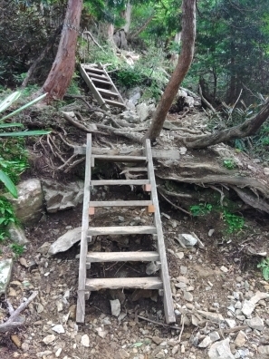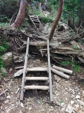 登山道に施設されている木製の階段の足場板が外れ、歩行が困難な状況のため、地元役場の職員さんと修繕作業を実施しました。