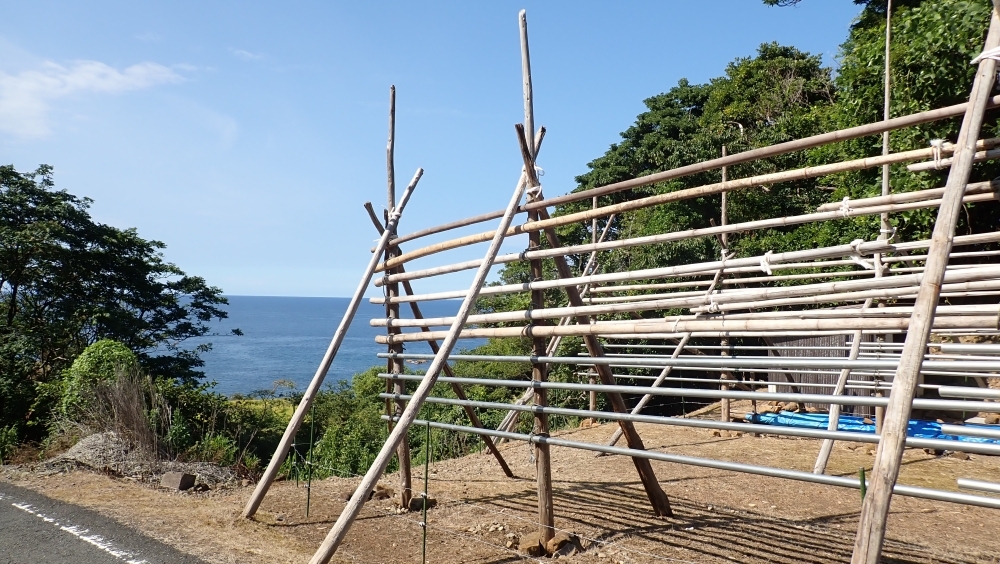 先日、京丹後市方面の巡視中に刈り取った稲を干すための稲木(いなき)を見かけました。