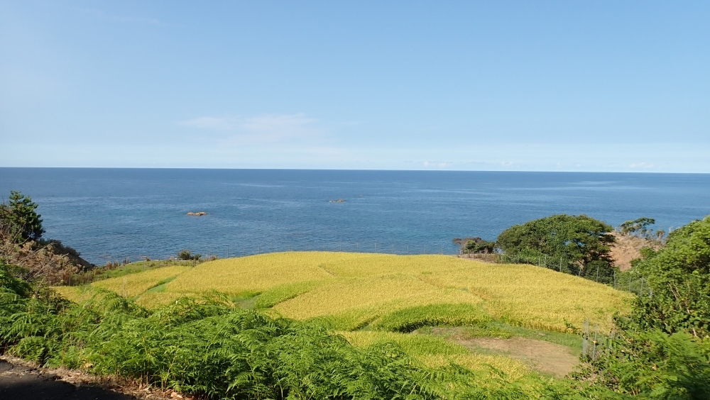 (稲木が立っていました) (海岸の斜面にある田んぼ)
