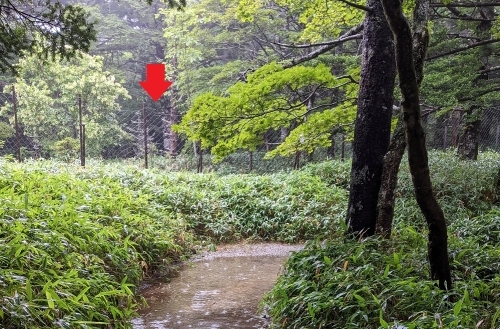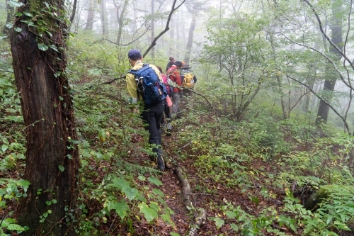 オオイタヤメイゲツやブナの稚樹を見ながら、柵の中を進んでいきます。
